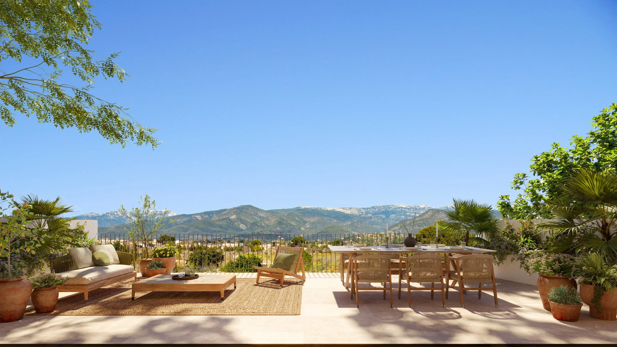 These luxury townhouses for sale in Santa Maria · Mallorca, open up to a wonderful three-floor home, including a private garage, a garden with a pool, and three terraces facing the breathtaking Tramuntana mountain range. Encompassing a seamlessly crafted blend of traditional Mallorquin architecture with contemporary living.